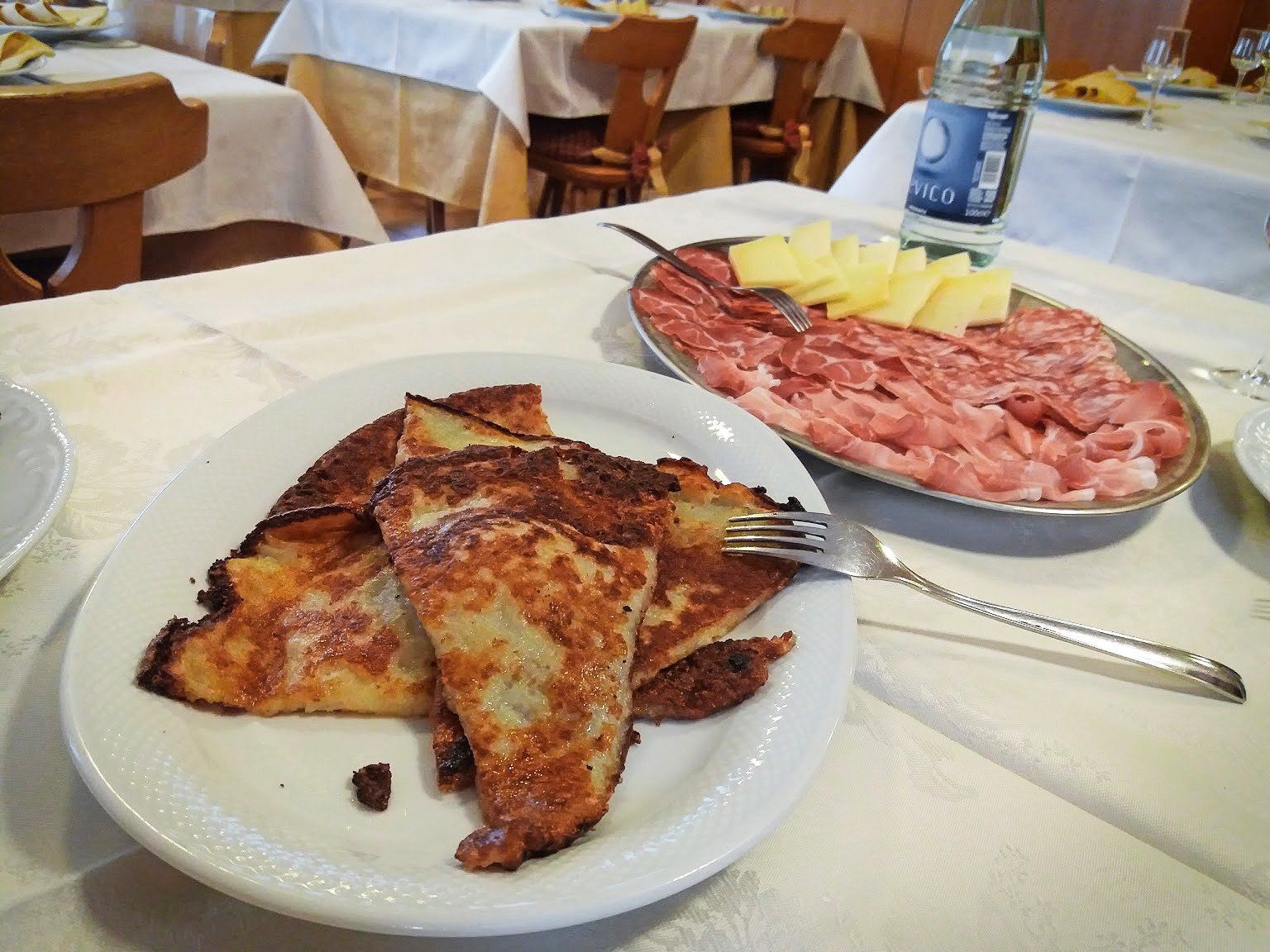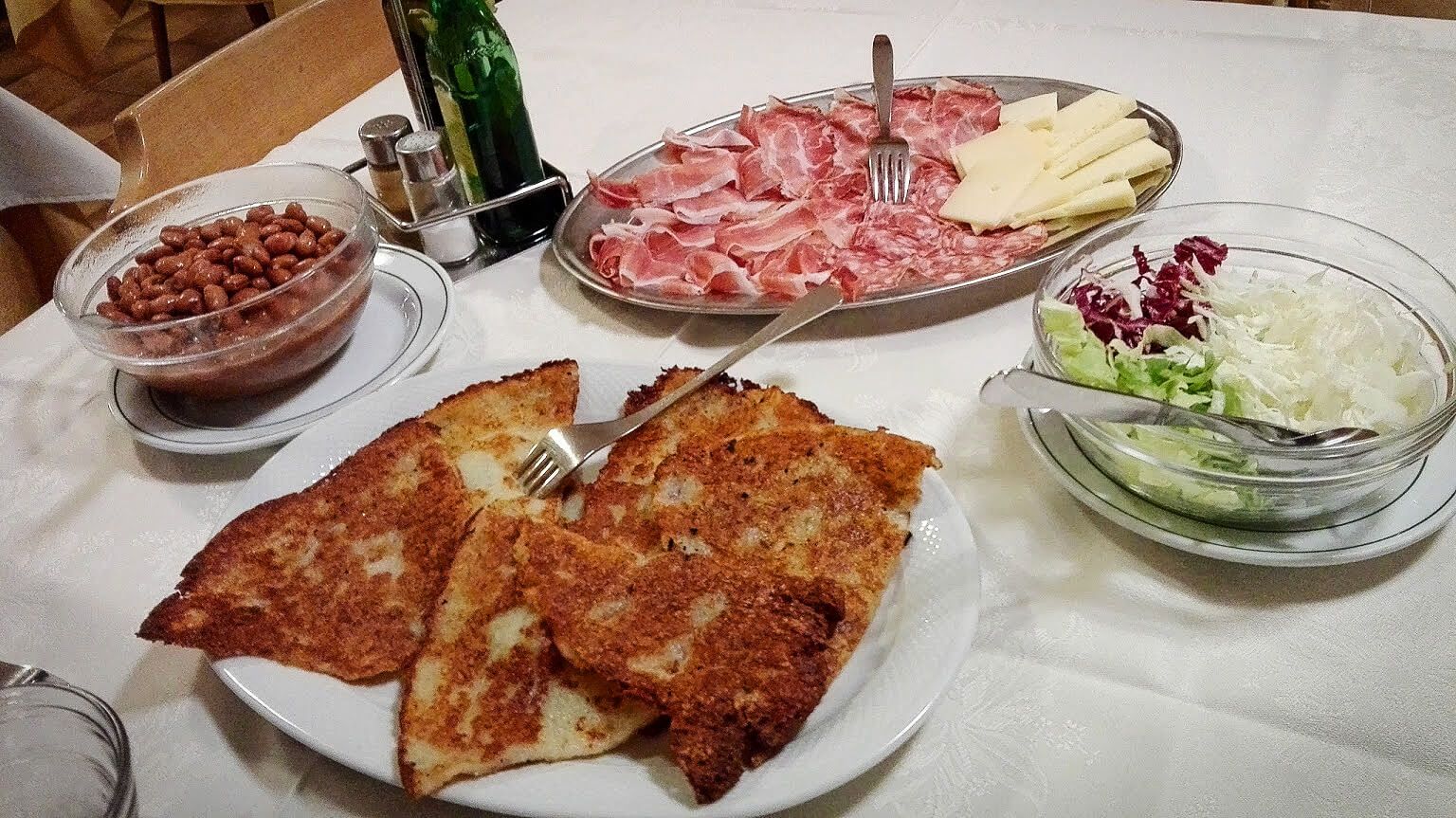 (le patate sono coltivate direttamente dai proprietari) cotta nel forno a legna e servita con affettati misti, formaggi e verdure: specialità unica
